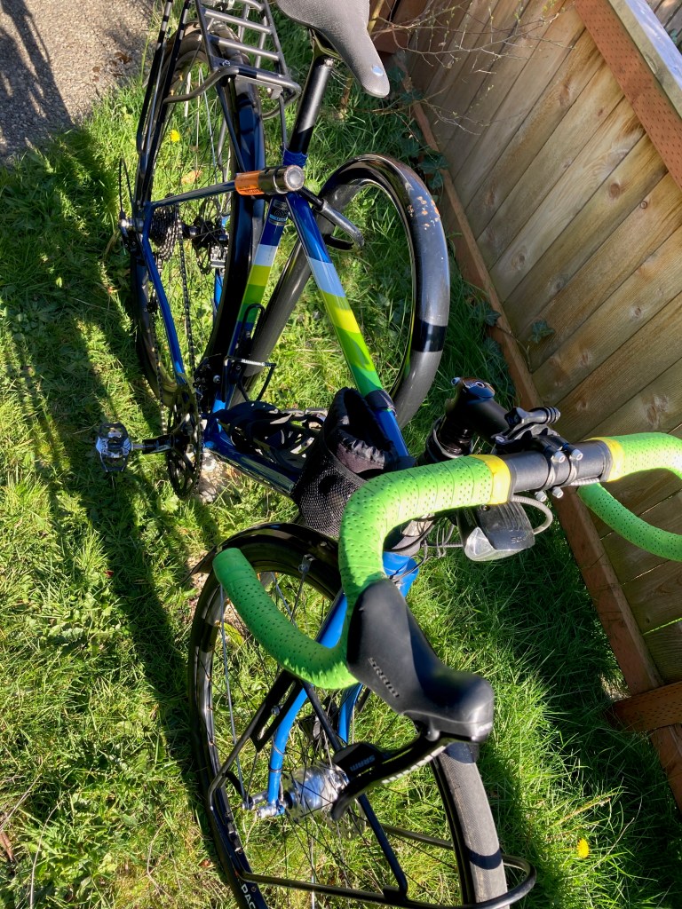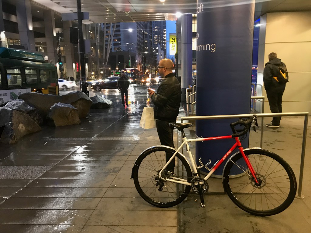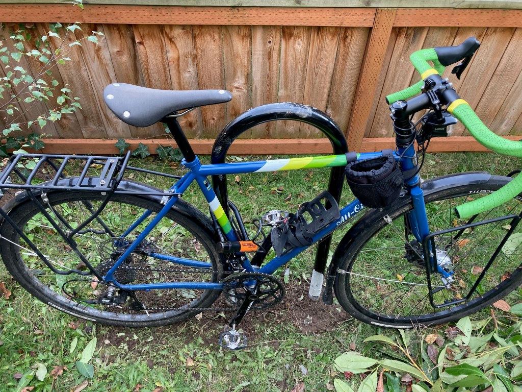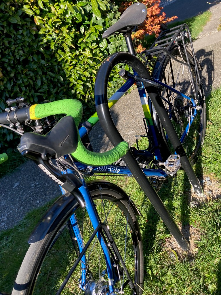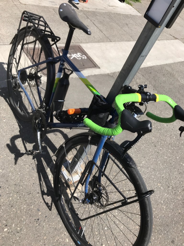 This is my main ride for almost everything. I’ve got larger tires on for smooth riding in bumpy ole’ Seattle. Good gearing. A reliable and comfortable seat. Solid additional parts like Chris King Hubs, etc.