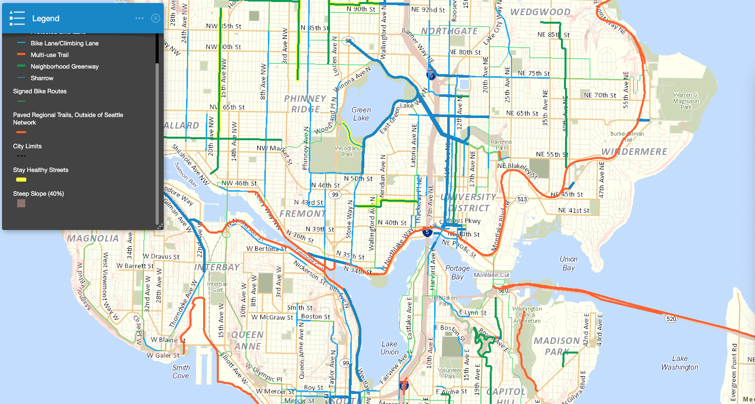 - Seattle City GIS (Excellent bike map, updated effectively in real time)