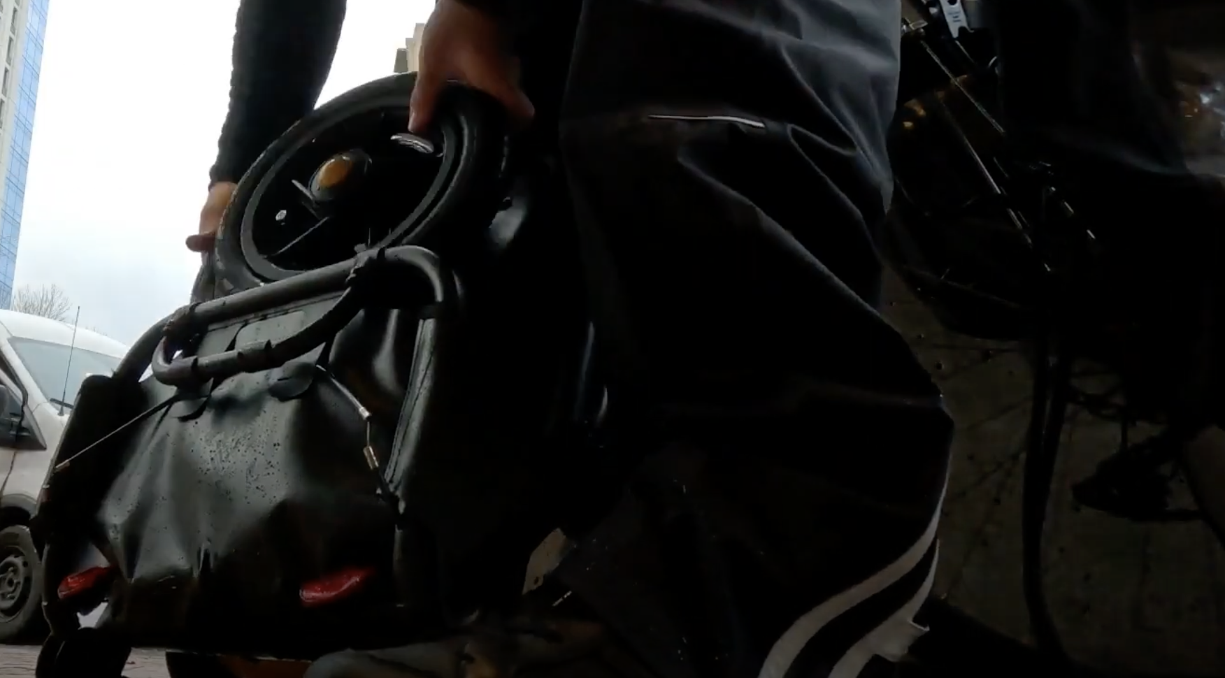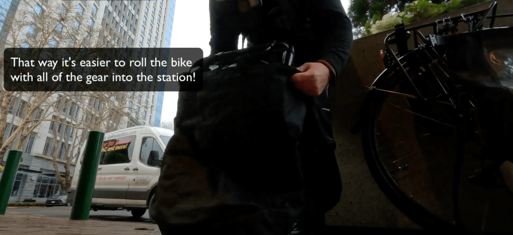 Upon arriving at the station I had my first *in the field* attempt at breaking down and stowing the Burley Travoy in its included bag. You can see in video, with these two images, that it went quickly and smoothly. It’s a great product and really easy to use.