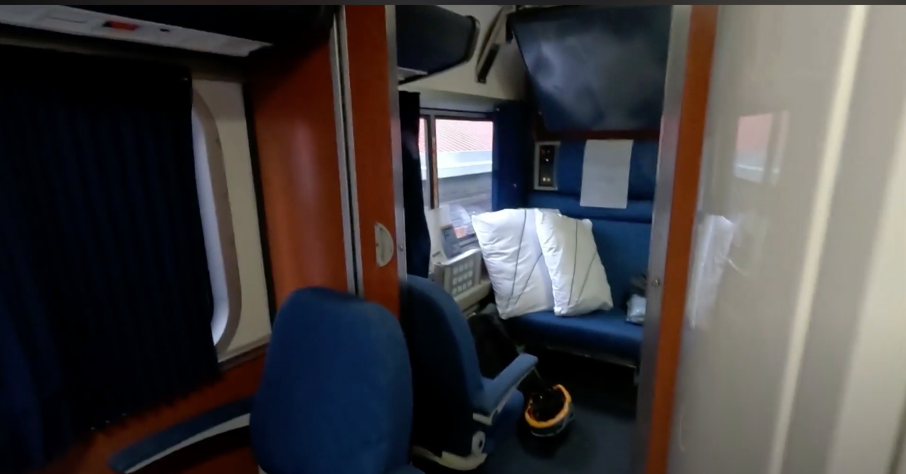 5:02 – A tour of Amtrak’s Superliner Bedroom accommodation.